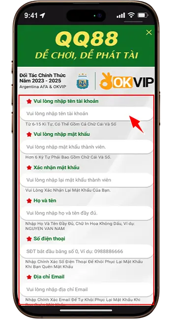 Điền đầy đủ các thông tin cá nhân theo yêu cầu: